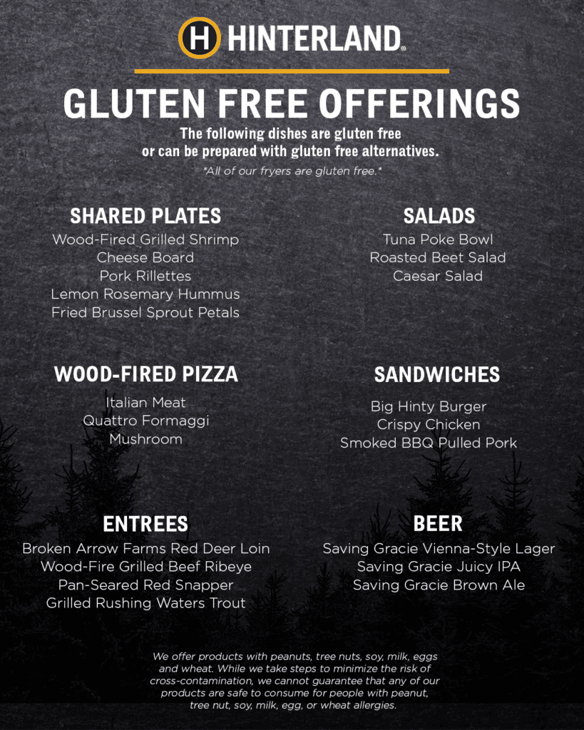 We feel that everyone deserves delicious food to accompany great beer—without the gluten. Our specially curated gluten-free menu is filled with big flavors, fresh ingredients, and tasty dishes that don’t compromise on flavor.